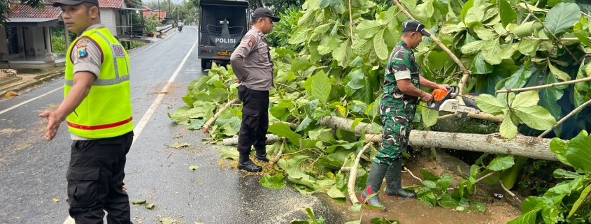 Babinsa Koramil 0826-10 Waru Evakuasi Pohon Tumbang di Jalan Utama Waru