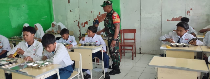 Babinsa Koramil 0830/09 Gubeng Awasi Kegiatan Makan Sehat Bergizi untuk Siswa di Surabaya
