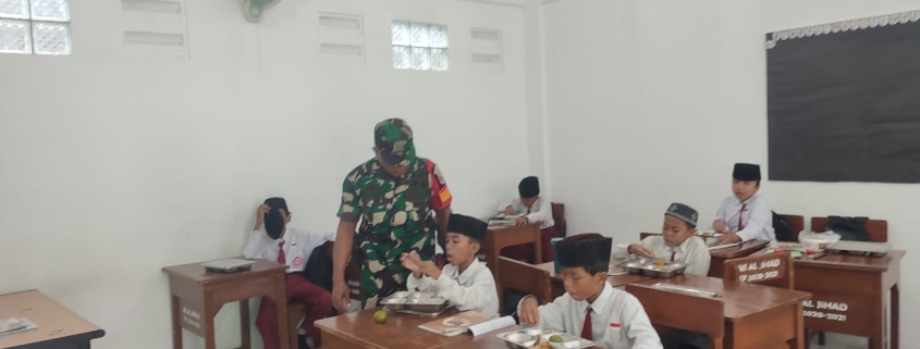 Babinsa Koramil 0830-09/Gubeng Bantu Distribusi Makan Sehat Bergizi, Jangkau Ribuan Siswa.