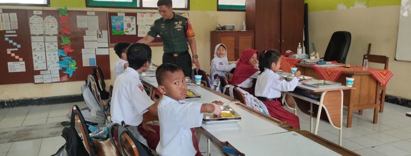 Kota Malang,- Dalam rangka mendukung program pemerintah untuk meningkatkan gizi anak dan menekan angka stunting, Babinsa Koramil 0833-01/Klojen, Kelurahan Bareng, Kecamatan Klojen, Kota Malang turut ambil bagian dalam pendampingan pembagian makanan bergizi gratis bagi anak-anak sekolah di wilayah binaannya.