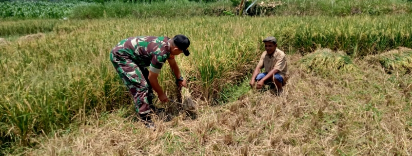 Babinsa Koramil 0833-04/Sukun Dukung Panen Padi untuk Tingkatkan Ketahanan Pangan di Malang