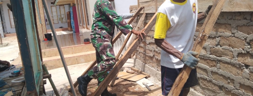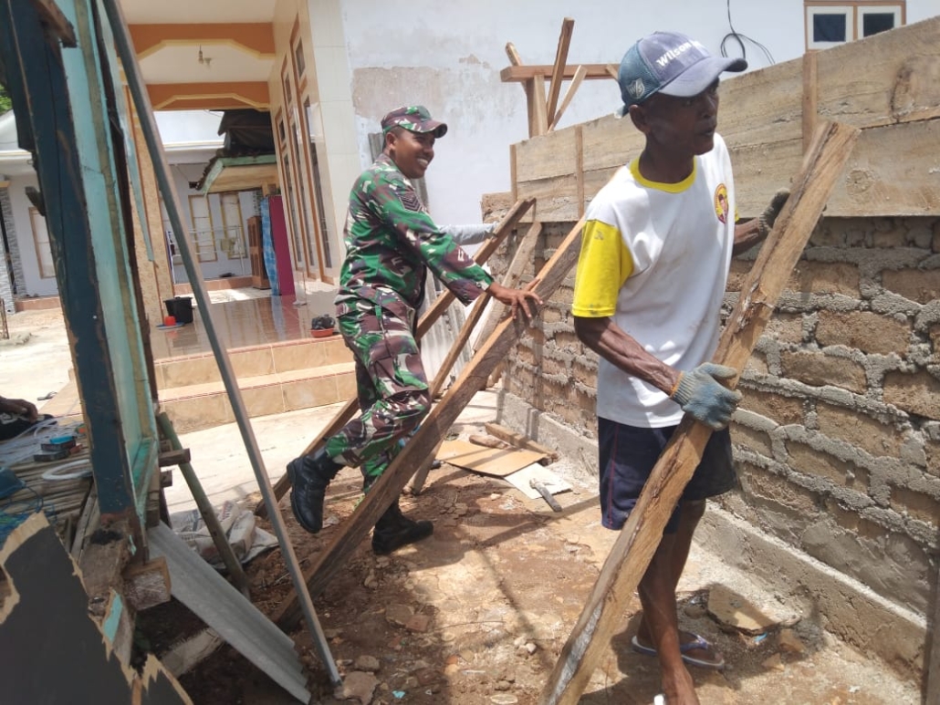 Babinsa Koramil 21/Raas Gotong Royong Bangun Rumah untuk Warga Binaannya.