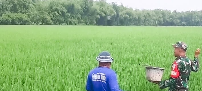 BOJONEGORO, – Dalam rangka mendukung program pemerintah dibidang ketahanan pangan, Bintara Pembina Desa atau Babinsa Koramil 03/Balen Kodim 0813 Bojonegoro, Serda Jamari, mendampingi salah satu petani Desa Sarirejo dalam merawat tanaman padi, Jum’at (27/12/2024).