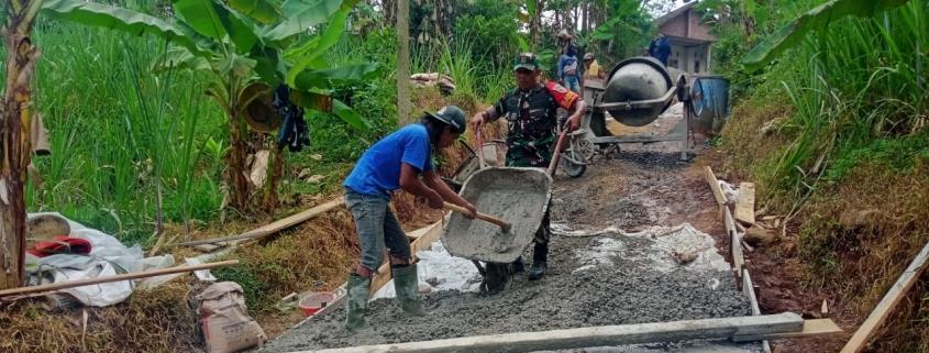 Babinsa Koramil Bareng Bantu Warga Bangun Jalan Rabat Beton Penghubung Dusun