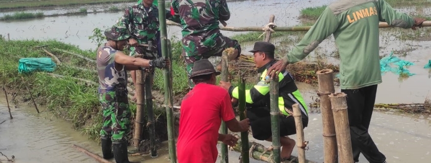 BOJONEGORO, – Anggota Babinsa Koramil 06/Baureno Kodim 0813 Bojonegoro Jawa Timur, bersama Pemerintah Desa (Pemdes) dan Polsek Baureno, bergotong royong memperbaiki tanggul jebol di Kali Simo Desa Sumuragung Kecamatan Baureno Kabupaten Bojonegoro.