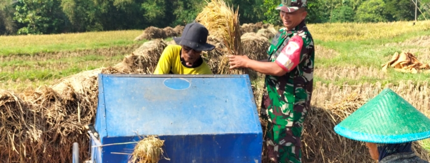 MADIUN – Serka Sutrisno, Babinsa Desa Prambon dari Koramil 0803-14/Dagangan, pada hari ini melaksanakan kegiatan pendampingan panen padi milik Bapak Slamet, anggota Kelompok Tani (Poktan) Sumber Maju. Kegiatan panen tersebut berlangsung pada Minggu (23/3) bertempat di lahan pertanian yang terletak di RT.12 RW.02 Dusun Selosari, Desa Prambon, Kecamatan Dagangan, Kabupaten Madiun. Pendampingan ini merupakan bagian dari tugas Babinsa dalam mendukung ketahanan pangan dan meningkatkan produktivitas pertanian di wilayah binaannya.
