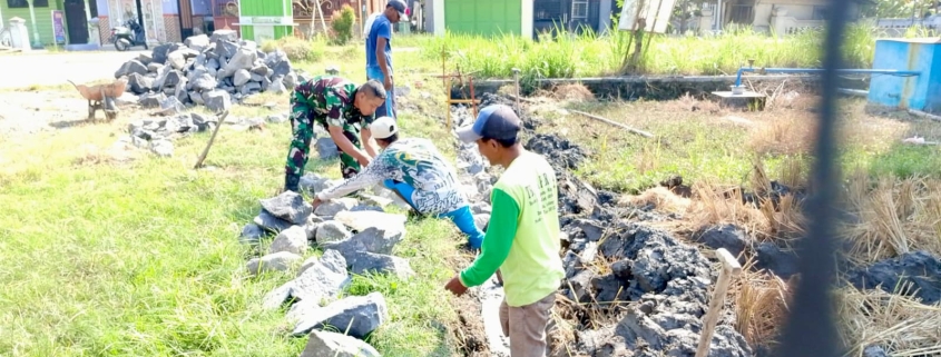 Babinsa Koramil Kudu Dampingi Warga Bangun Saluran Air Cegah Banjir Musim Hujan