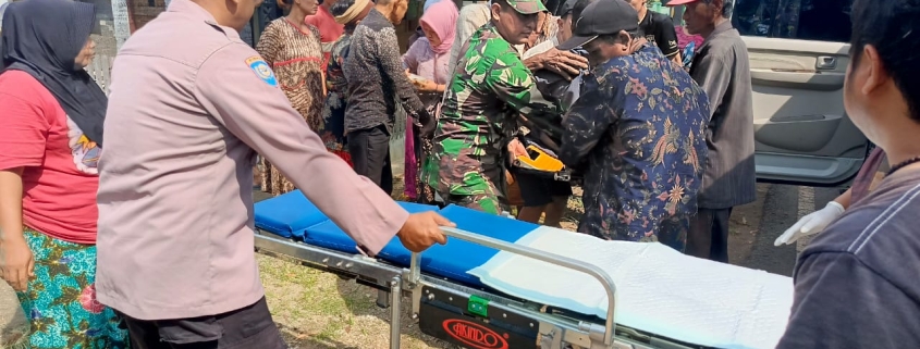 Bangkalan – Anggota Koramil 0829-02/Socah, Serka Saiful Hadi dan Sertu Mustain, bersama anggota Polsek Socah, bergerak cepat untuk membantu evakuasi korban kecelakaan lalu lintas di Jalan Raya Keleyan, Kecamatan Socah, Kabupaten Bangkalan. Minggu (12/1/2025)