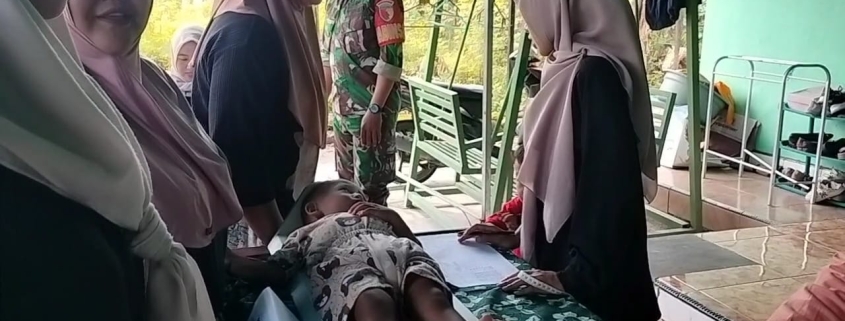 Sebanyak lima belas ibu bersama balita mengikuti pemeriksaan kesehatan dan imunisasi. Seluruh peserta memperoleh layanan preventif secara profesional, mencerminkan kolaborasi efektif antara aparat teritorial dan tenaga medis di wilayah binaan.