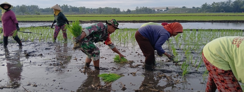Serda Adi Kurnia menyampaikan Wujud dukungan TNI khususnya prajurit kewilayahan dalam hal ini Babinsa dalam mendukung ketahanan pangan, dengan Semangat ikut serta terjun langsung ke sawah dalam membantu para petani desa binaannya saat menanam padi, inilah wujud nyata yang dilakukan oleh Babinsa kepada para petani warga desa binaannya.ujarnya.