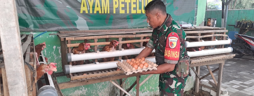 Surabaya — Sebagai wujud nyata kontribusi dalam program ketahanan pangan nasional, anggota Babinsa Koramil 0830/01 Krembangan, Sertu Akhiri, secara rutin melakukan perawatan dan pemeliharaan ayam petelur hasil budidaya Koramil. Kegiatan ini berlangsung di kandang Makoramil 0830/01 Krembangan, Jl. Kalianak Timur No. 167, Sabtu (28/6).