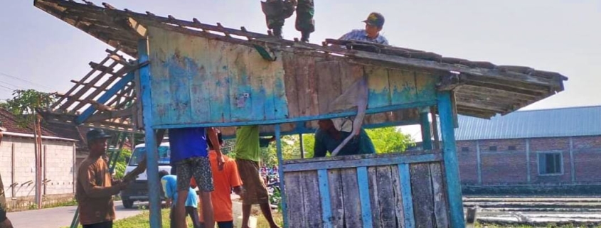 Babinsa Kudu Bersama Warga Gotong Royong Rehabilitasi Pos Kamling Tingkatkan Keamanan Desa