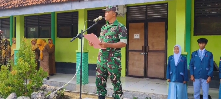 Babinsa Labang Tanamkan Disiplin dan Nasionalisme Melalui Upacara di SMKN 1 Labang