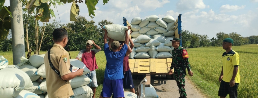 Babinsa Serda Ganies, yang bertugas di Desa Jonggrang, Kecamatan Barat, Kabupaten Magetan, bersama dengan Satgas Bulog terlihat mendampingi langsung para petani saat proses pengangkutan dan penimbangan gabah di lokasi persawahan. Hal ini dilakukan untuk memastikan harga gabah yang diterima petani sesuai dengan harga yang telah ditetapkan pemerintah yakni 6.500/ Kg serta untuk menghindari praktik tengkulak yang merugikan petani.