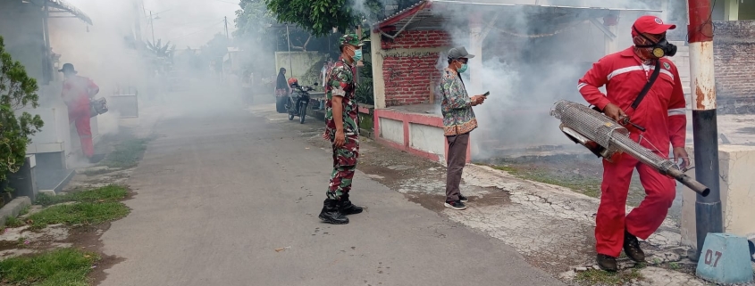 Magetan,- Dalam rangka mencegah penyebaran nyamuk demam berdarah, Babinsa Kelurahan Maospati Sertu Suroto dan Koptu Arif anggota Koramil Maospati jajaran kodim 0804/Magetan laksanakan pendampingan kegiatan fogging dari Dinas Kesehatan di Kelurahan Maospati yang bertempat di jln Mliwis RT 08 RW 02 Kelurahan Maospati kec Maospati kab Magetan.