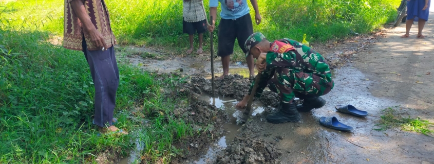 Kebocoran saluran air tersebut telah menyebabkan genangan air di sepanjang jalan Srabi Timur, yang berpotensi mengganggu aktivitas warga serta membahayakan pengguna jalan. Sebagai bentuk kepedulian dan tanggung jawab sosial di wilayah binaannya, Serka Efri Saputra turun langsung membantu proses perbaikan bersama warga setempat.