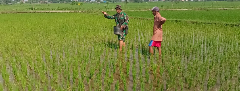 JOMBANG,– Babinsa Koramil 0814-15/Mojowarno Kodim 0814/Jombang melaksanakan pendampingan pemupukan tanaman padi milik Bapak Sugiono (49) di Dusun Rejosari, Desa Gondek, Kecamatan Mojowarno, Kabupaten Jombang. Kegiatan ini menjadi wujud nyata TNI AD dalam mendukung produktivitas pertanian, Sabtu (13/12/2025).