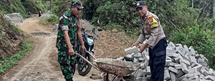 Babinsa Ngilo Ilo Ajak Warga Bergotong Royong Pasang Paving Jalan Dusun Suka Makmur