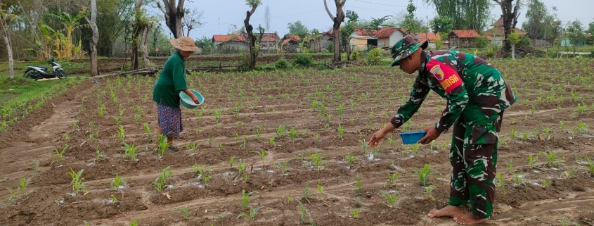 Babinsa Pamekasan Dampingi Warga Lakukan Pemupukan Tanaman Jagung di Pamekasan