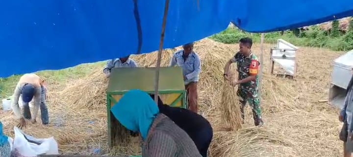 Babinsa Pangarengan Berpartisipasi Aktif dalam Panen Padi Warga Desa Gulbung