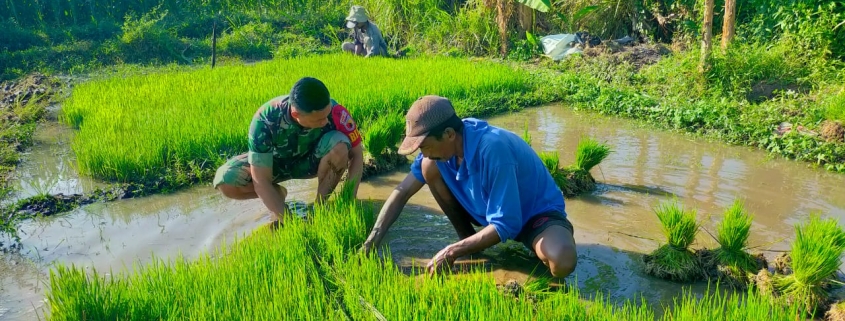 Babinsa Penang Dampingi Pemindahan Bibit Padi untuk Dukung Ketahanan Pangan