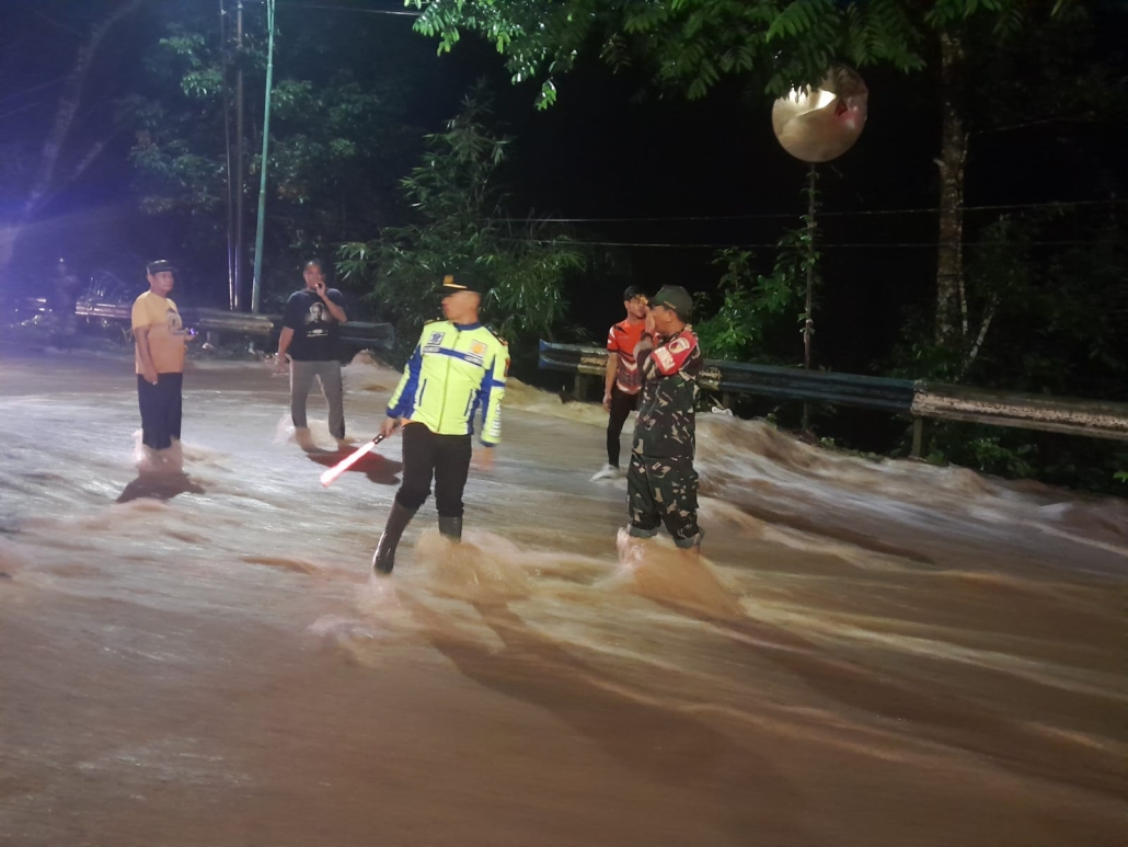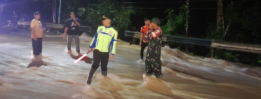Tidak hanya melakukan pemantauan, Babinsa turut membantu warga yang mengalami kesulitan melewati jalan yang tergenang banjir. Warga dan aparat bahu-membahu mengatur lalu lintas, membantu pengendara, dan memastikan keselamatan masyarakat tetap terjaga.