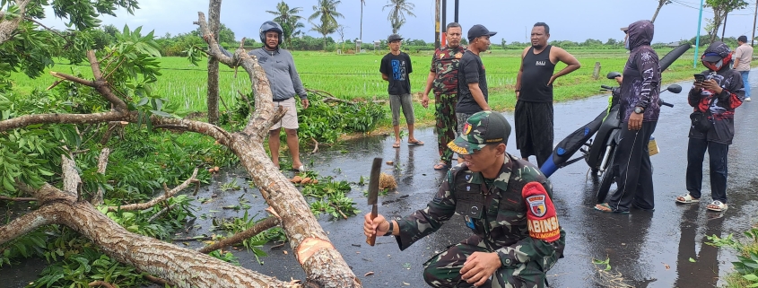 Babinsa Rogojampi Evakuasi Pohon Tumbang Akibat Angin Kencang dan Hujan Deras