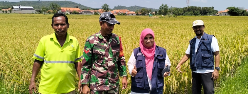Koptu Usman Ali mengatakan, “Kami bersama PPL dan Poktan hari ini mengecek padi siap panen di sawah milik Suherman dengan luas 1 hektar. Rencananya panen akan dilakukan malam ini setelah Sholat Taraweh menggunakan mesin combine.”