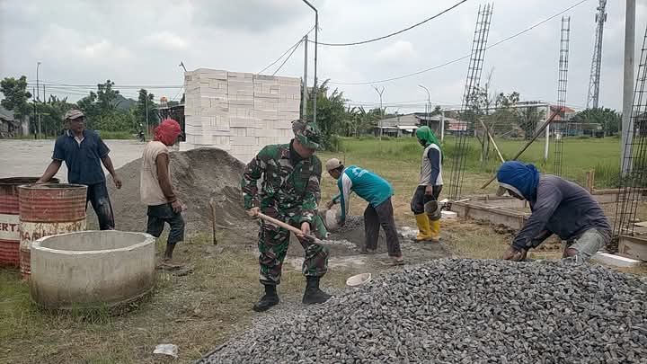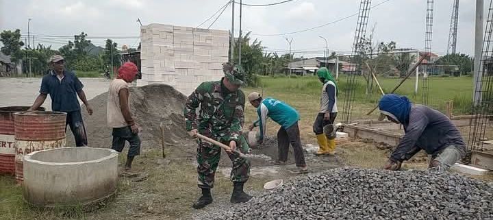 Gresik- Berada di tengah tengah masyarakat, Serka Juahir Babinsa Koramil 0817/02 Wringinanom membantu pembangunan ruko guna masyarakat usaha UMKM di Desa Sembung, Kecamatan Wringinanom, Kabupaten Gresik.
