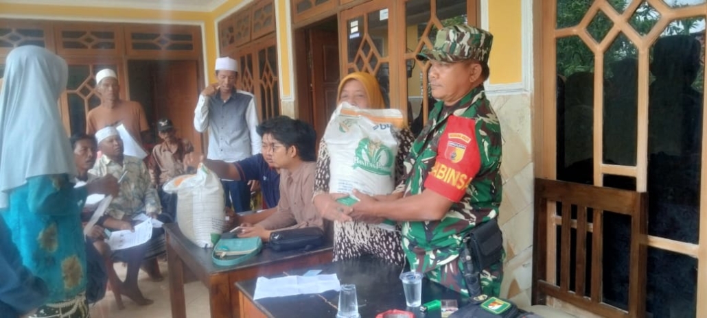 Sertu Rubiyanto, bersama perangkat desa, memantau langsung proses pendistribusian beras yang merupakan bantuan dari pemerintah untuk warga yang terdampak kesulitan ekonomi. Dalam kegiatan tersebut, Sertu Rubiyanto memberikan arahan kepada warga agar pendistribusian berjalan tertib dan tepat sasaran, serta memastikan tidak ada penyalahgunaan atau penyelewengan bantuan.