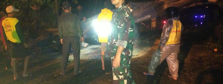 “Saya menghimbau kepada warga pengguna jalan agar berhati-hati dalam berkendara terutama disaat hujan yang disertai angin”Imbuh Danramil.