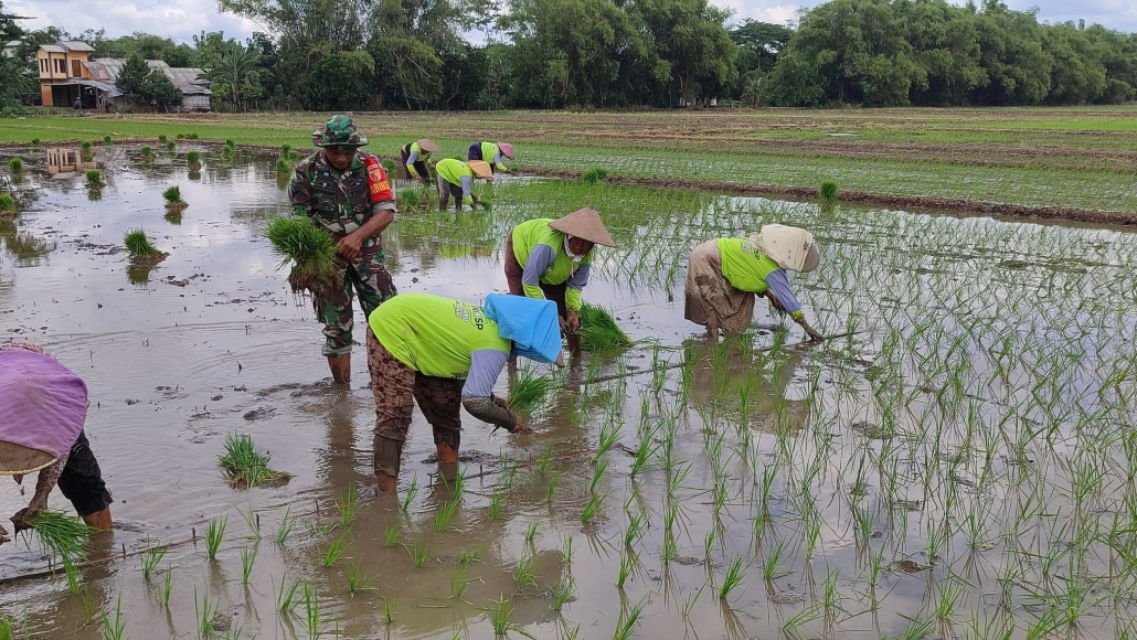 Kegiatan pendampingan ini menjadi wujud kepedulian TNI AD terhadap kesejahteraan petani sekaligus langkah konkret dalam meningkatkan hasil produksi pertanian. Babinsa bersama petani tampak bergotong royong menanam bibit padi dengan semangat kebersamaan dan kerja nyata di wilayah binaan.