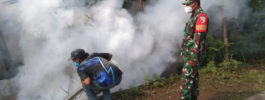 JOMBANG – Dalam rangka mencegah penyebaran penyakit demam berdarah dengue (DBD) di musim penghujan, Babinsa Koramil 0814-11/Sumobito Sertu Heri Agus S. mendampingi kegiatan fogging bersama petugas kesehatan di Desa Budugsidorejo, Kecamatan Sumobito, Kabupaten Jombang, Sabtu (13/12/2025).
