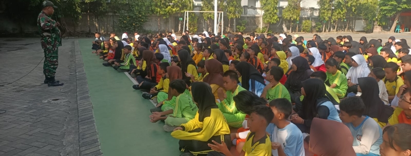Surabaya,— Dalam rangka membentuk karakter generasi muda yang disiplin dan bertanggung jawab, Babinsa Kelurahan Wiyung dari Koramil 0830/19 Karangpilang, Serda Anto Triyono bersama Koptu Farie Dwi Arianto, menggelar kegiatan pelatihan baris-berbaris (PBB) dan pembinaan karakter di SMPN 34 Wiyung, Jl. Menganti Wiyung, Kecamatan Wiyung, Selasa (22/7).