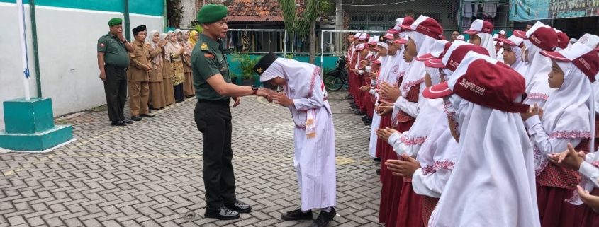 Babinsa Wiyung Tanamkan Wawasan Kebangsaan dan Disiplin Siswa MI Bahrul Ulum Surabaya