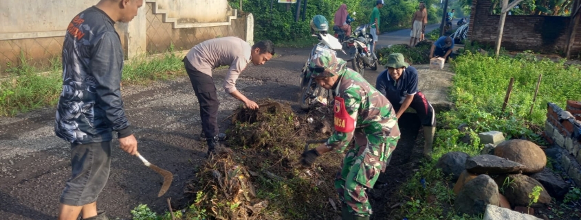 PROBOLINGGO — Babinsa Koramil 0820-02/Wonoasih melaksanakan kerja bakti bersama pemerintah kelurahan dan masyarakat di Kelurahan Pakistaji sebagai upaya menciptakan lingkungan bersih sehat dan nyaman sekaligus memperkuat kemanunggalan TNI dengan rakyat di wilayah binaan secara berkelanjutan.