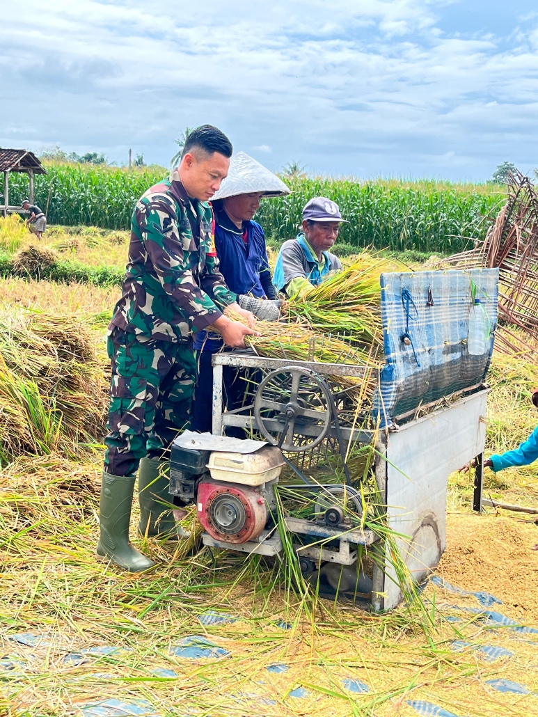 Bantu Petani Panen Padi, Babinsa Hadir Beri Dukungan, Petani Semangat Hadapi Cuaca Ekstrem
