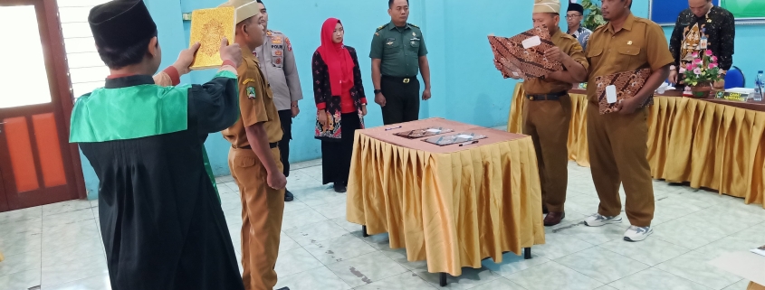 Magetan,– Batituuf Koramil Tipe B 0804/10 Kawedanan Kodim 0804 Magetan Peltu Suwanto menghadiri pelantikan mutasi dan pengambilan sumpah jabatan perangkat Desa baru dari Kasi pelayanan ke Kasi Pemerintahan yang bertempat di Kantor Balai Desa Ngunut Kecamatan Kawedanan ,Kabupaten, Magetan. Jumat (25/04/2025)