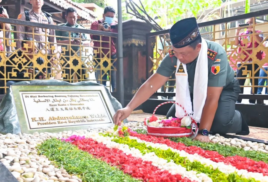 Selain bersilaturahmi, Mayjen TNI Farid Makruf bersama Irjen Pol Toni Harmanto juga berziarah ke Makam Presiden RI ke-4, K. H Abdurrachman Wahid atau yang akrab dikenal Gus Dur dan melaksanakan doa bersama demi terjaganya kondusifitas dan stabiltas keamanan serta ketertiban Nasional khususnya di wilayah Jawa Timur.