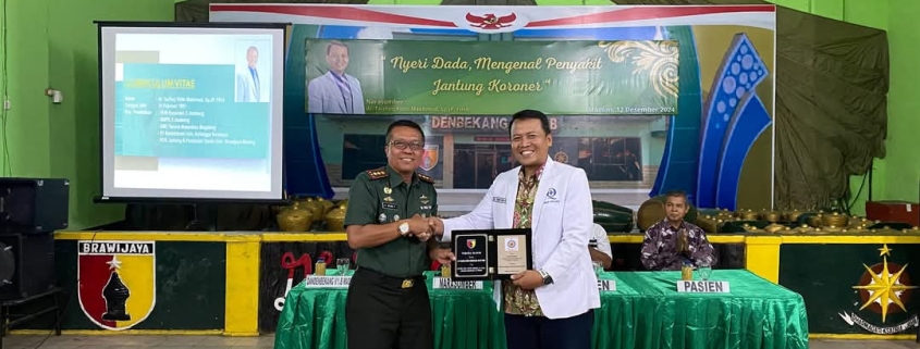 MADIUN – Bincang kesehatan dengan tema “Nyeri Dada, Mengenal Penyakit Jantung Koroner” berlangsung sukses di aula Denbekang V/1.B Madiun pada Kamis, 12 Desember 2024. Dr. Taufiek Ridlo Makhmud menjadi narasumber utama.