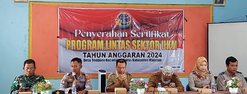 Magetan,- Danpos Karas Peltu Funindyanto hadiri undangan penyerahan sertifikat tanah Lintas Sektor UKM untuk masyarakat khususnya pelaku usaha mikro kecil berlangsung di Aula Desa Temboro, Kecamatan Karas, Jum’at (27/12/2024).