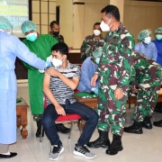 Surabaya,- Danrem 084/Bhaskara Jaya Brigjen TNI Herman Hidayat Eko Atmojo bersama dengan para Perwira Staf Makorem dan Dandim di jajarannya mengikuti video conference yang dipimpin oleh Gubernur Jawa Timur, Khofifah Indar Parawansa pada Selasa, 26 Januari 2021 siang.