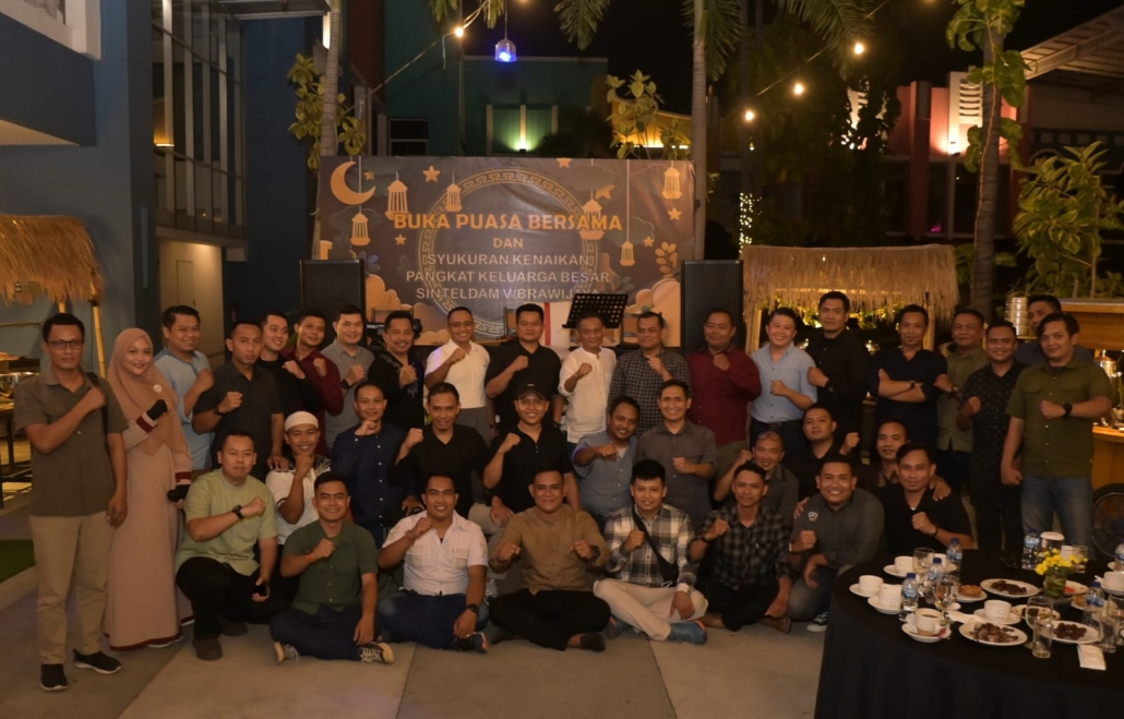 Surabaya,- Ketua Persit Kartika Chandra Kirana Cabang 1 Sinteldam PD V/Brw menghadiri Acara Buka Bersama dan Syukuran Kenaikan Pangkat Keluarga Besar Sinteldam V/Brw yang berlangsung di Tsar Hotel, Surabaya. Acara ini dihadiri oleh seluruh anggota Sinteldam V/Brw beserta keluarga.