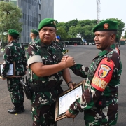 Selanjutnya saya memberikan penghargaan kepada para prajurit berprestasi yang telah menunjukkan dedikasi dan pengabdiannya yang luar biasa. Penghargaan tersebut sebagai bentuk apresiasi atas kerja keras, keberanian, dan kedisiplinan para prajurit dalam menjalankan tugas-tugasnya. Dengan penuh semangat Pangdam V/Brw turut memberikan motivasi agar para prajurit terus mengukir prestasi dan menjunjung tinggi nilai-nilai keprajuritan.