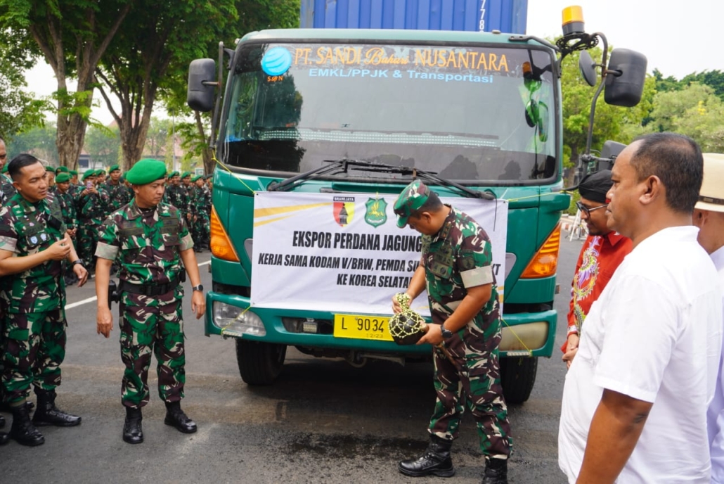 SURABAYA. Pendam V || Langkah ini merupakan bukti nyata potensi luar biasa yang dimiliki oleh Indonesia dalam sektor pertanian khususnya di wilayah Kabupaten Sumenep Madura. Perlu diketahui jagung silase merupakan makanan ternak yang memiliki kadar air tinggi, diolah melalui proses fermentasi dengan bantuan jasad renik. Proses tersebut dilakukan dalam kondisi anaerob atau tanpa oksigen, baik dengan penambahan atau tanpa penambahan pengawet, produksi lokal dari Sumenep ini menjadi pilihan utama bagi Korea Selatan karena kualitasnya yang unggul dan bernutrisi tinggi. Kerjasama yang erat antar Stakeholder terkait dari Pemda Sumenep, PT Citra Kartika Tandur serta Kodam V/Brw menjadikan impian ini menjadi kenyataan. Ekspor ini tidak hanya meningkatkan pendapatan petani di Sumenep, tetapi juga memperkuat posisi Indonesia sebagai pemain utama dalam perdagangan jagung internasional. Mari bersama-sama bangkitkan potensi pertanian kita serta memperkuat hubungan dagang antara Indonesia Korea Selatan sehingga sektor pertanian Indonesia semakin maju.