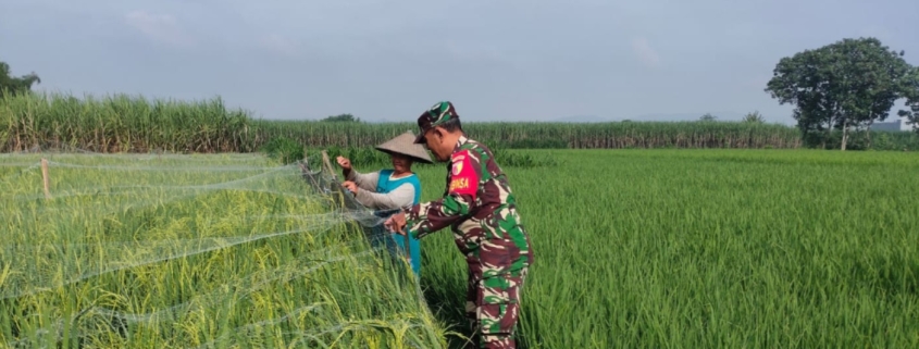 Tulungagung – Babinsa Desa Bendiljati Wetan, Serma Agus Prasetiyo anggota Koramil Tipe B 0807/07 Sumbergempol, melaksanakan kegiatan pendampingan pertanian membantu petani memasang jaring pelindung pada tanaman padi di lahan milik warga binaan anggota Kelompok Tani Karto Nuju Raharjo, Desa Bendiljati Wetan, Kecamatan Sumbergempol, Kabupaten Tulungagung, Jawa Timur, Selasa (19/08/2025).