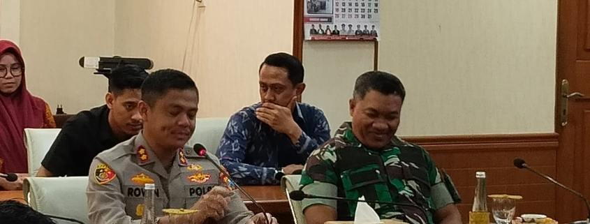 Gresik – Komandan Kodim 0817/Gresik, Letkol Inf Ahmad Saleh Rahanar, S.Sos., menghadiri kegiatan perkenalan Kapolres Gresik yang baru, AKBP Rovan Richard Mahenu, S.I.K., M.Si., bersama Forkopimda Gresik di Ruang Graita Eka Praja, Kantor Pemkab Gresik, Jl. Dr. Wahidin Sudiro Husodo, Kec. Kebomas, Kab. Gresik