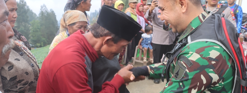 Probolinggo, Dandim 0820/Probolinggo Letkol Arh Iwan Hermaya bersama Kapolres Probolinggo AKBP Wisnu Wardana melakukan penyerahan bantuan sosial dalam rangka hari ulang tahun Bayangkara ke 79 tahun 2025 di Desa Sariwani, Kecamatan Sukapura, Kabupaten Probolinggo, Sabtu (21/6).