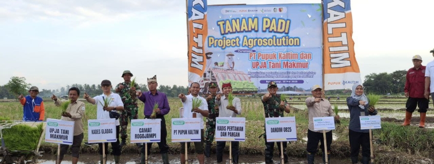 Banyuwangi,- Upaya penguatan ketahanan pangan lokal di Banyuwangi semakin nyata dengan dimulainya kegiatan “Tanam Padi Project Agrosolution” di Desa Gladag, Kecamatan Rogojampi. Acara ini merupakan kolaborasi strategis antara PT Pupuk Kaltim, Kelompok Tani Makmur (UPJA Tani Makmur), dan dukungan penuh dari Komando Distrik Militer (Kodim) 0825 Banyuwangi. Selasa (20/05/2025).