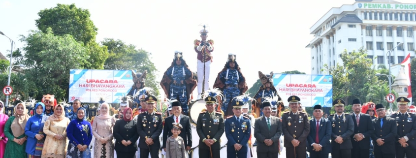 Upacara yang digelar oleh Polres Ponorogo dengan penanggung jawab Kapolres Ponorogo AKBP Andin Wisnu Sudibyo, S.I.K., M.H. tersebut dihadiri oleh Forkopimda, berbagai Dinas dan instansi termasuk Kodim 0802/Ponorogo serta pata tamu undangan lainnya.